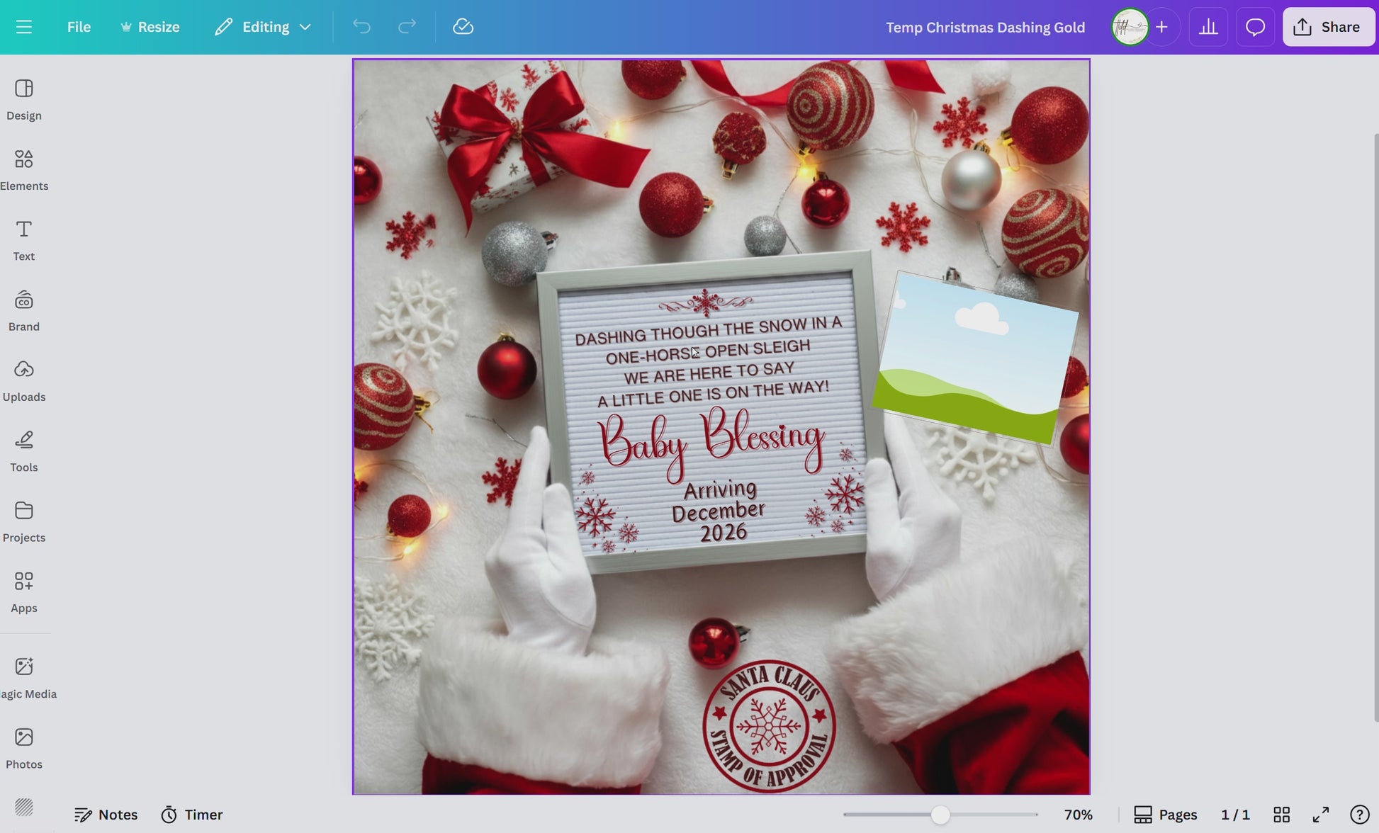 Digital Christmas Pregnancy Announcement, A Little One ison the Way, Customizable Gold Winter Themed, Personalized Editable Template
